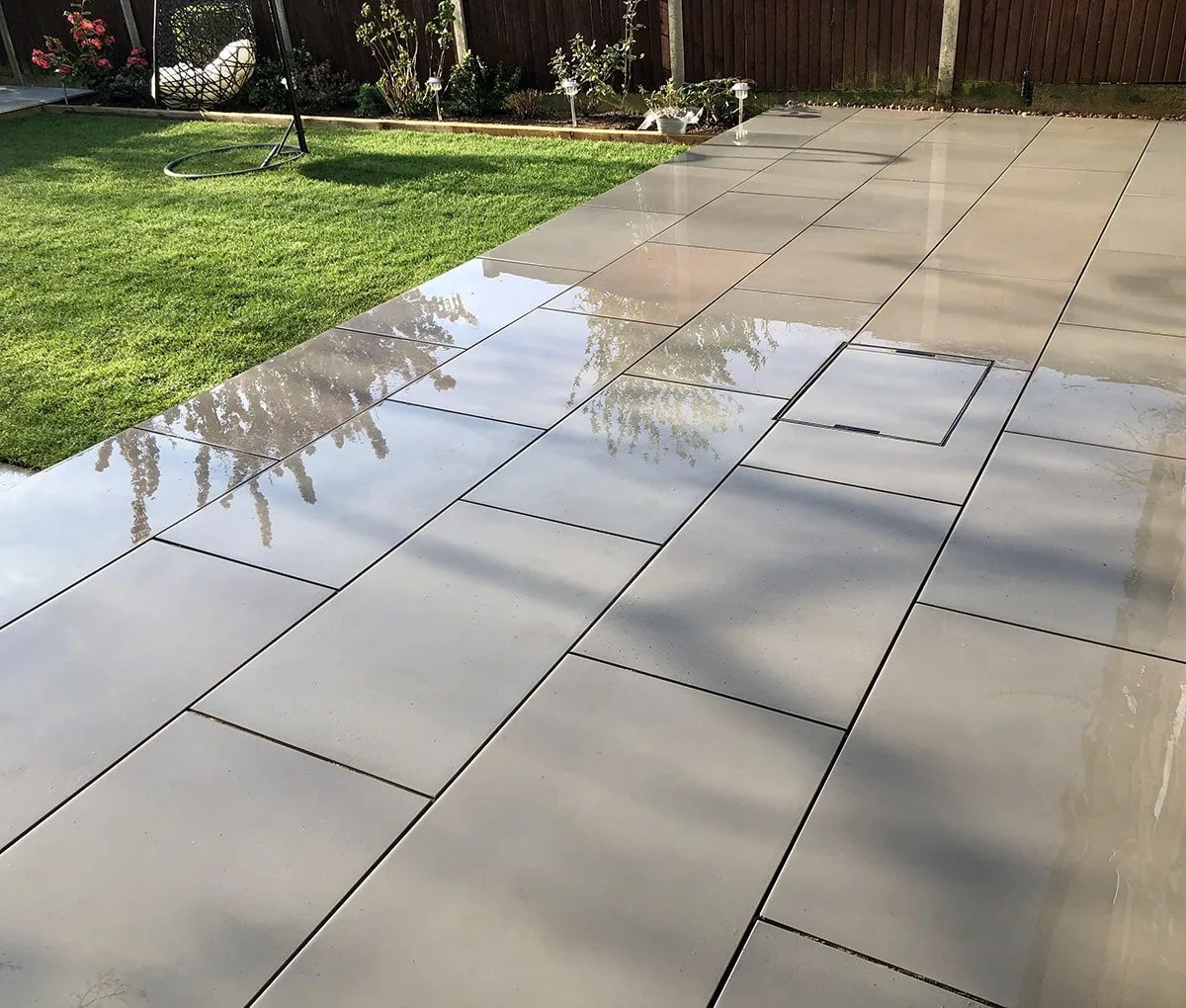 Kandla Grey Sawn Sandstone offers a smooth surface and provides a more elegant feel to any modern patio.