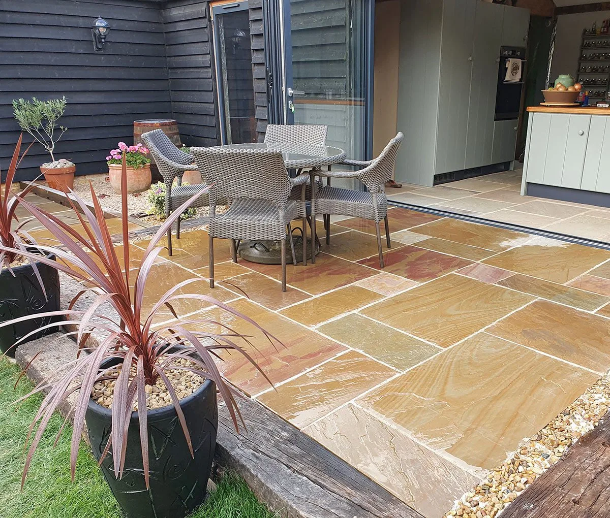 Indian Sandstone Paving is one of the most popular choices of garden paving for patios and pathways and is available in a huge range of colour options!
