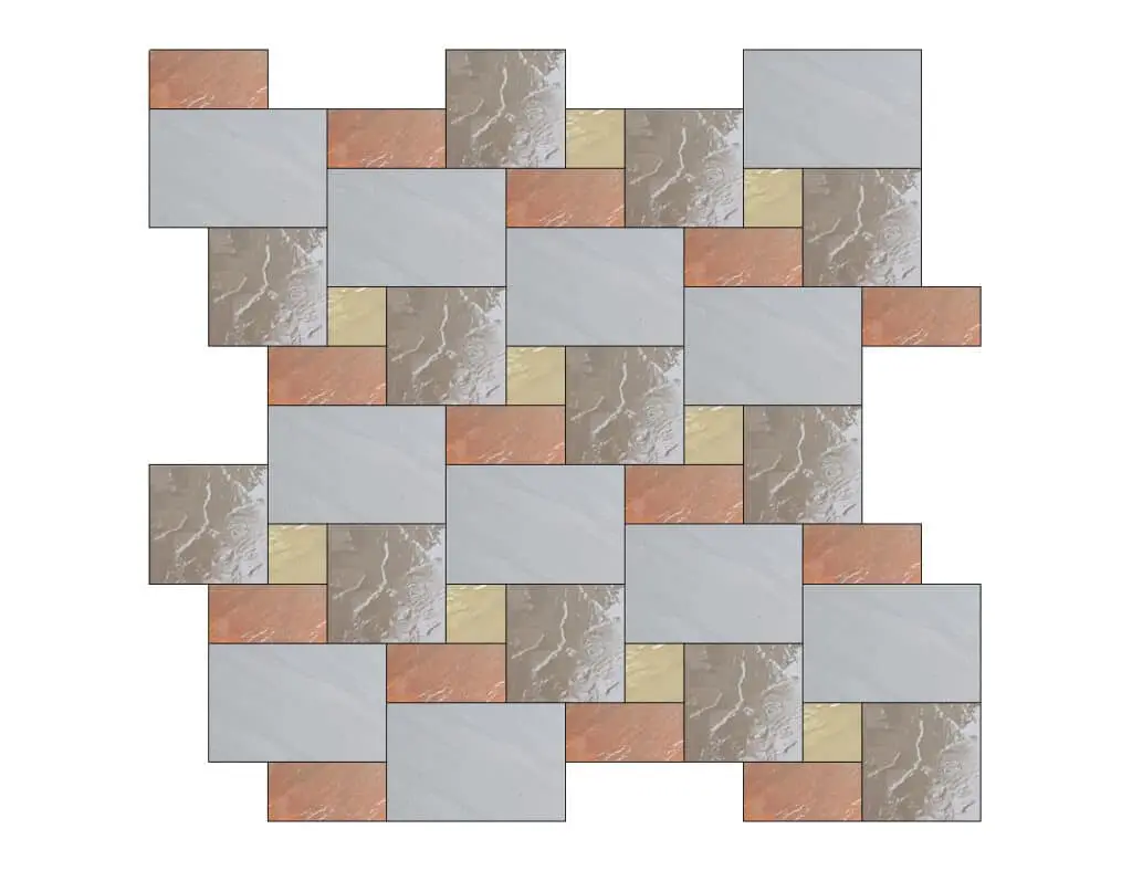 The mixture of sizes within each crate is perfect for creating a random design, just be sure that you've checked the sizes and quantities of each slab so you can plan your pattern accordingly and you'll be set to start work on your random laying pattern!