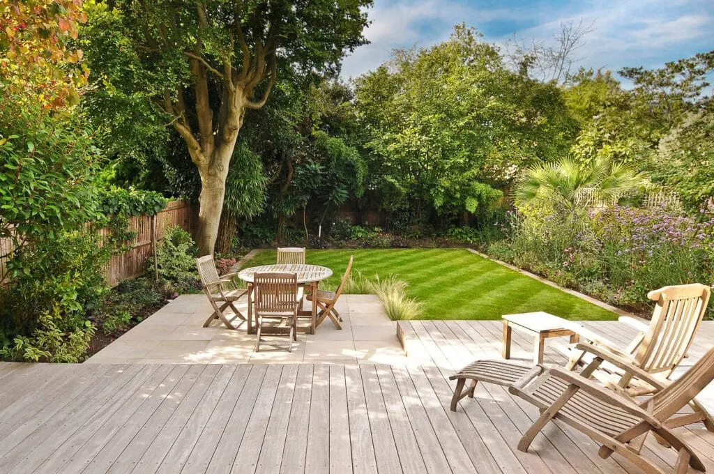 Creating different areas within your garden using different materials is a handy way to create a useful, versatile space that can be used year-round. Paired against vibrant green grass, practical wooden decking, and a picturesque planting area, Indian Sandstone Paving can be used to create a clean-cut, compact dining area. Better still, use any cuts and wastage from the laying process to create edging for your planting areas, pulling the outdoor space together as one.
