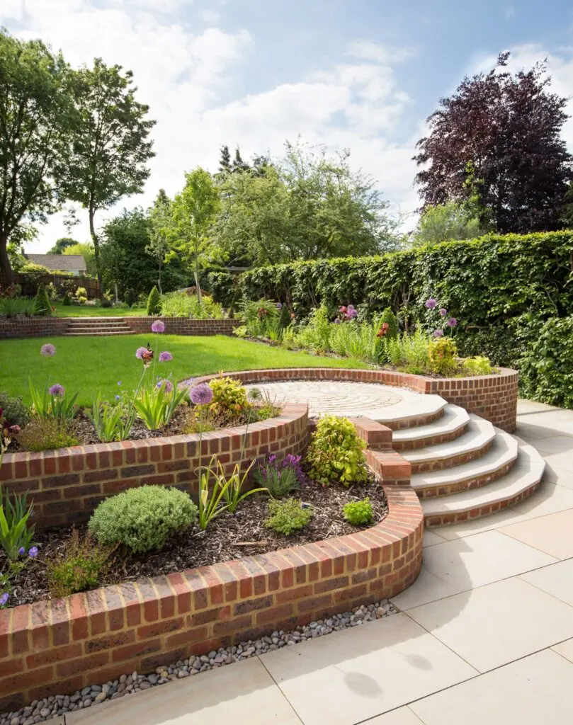 Possibly one of the most popular uses of Indian sandstone paving, using this versatile stone, you can create a multi-level outdoor space – even more so than other types of natural stone paving as the colours within the sandstone effortlessly sit in harmony alongside brickwork, gravel, grass, and bark, and even help to set off vibrant planting areas with pink, purple and buff hues.