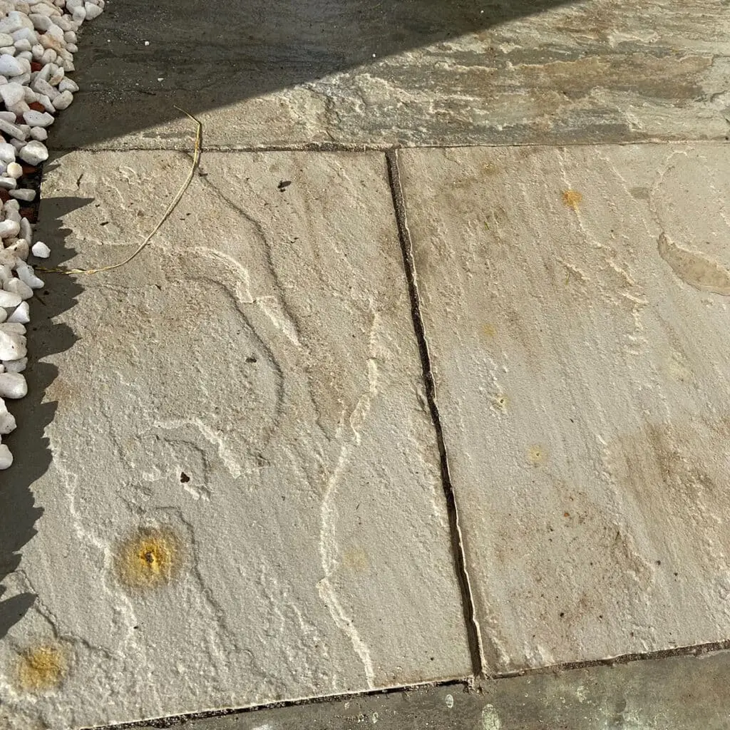 Oxidation is a process that occurs when the iron minerals in the stone are drawn to the surface and exposed to moisture and air, causing them to rust and turn a reddish-brown or orange colour. The resulting marks on the paving will vary due to the porosity of the stone and the minerals contained within it. Some types of natural stone paving, such as Granite and Kandla Grey Sandstone, have high iron content and can be more susceptible to this.