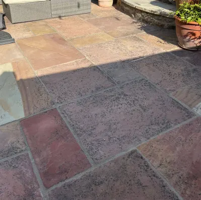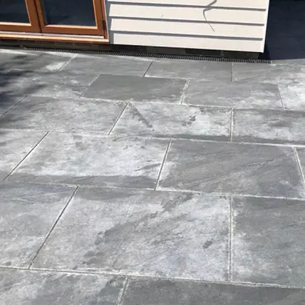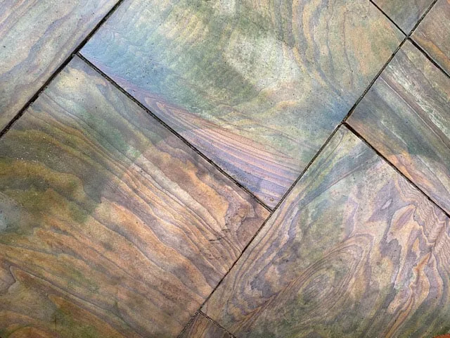 We recommend that you seal your paving to prevent the stone from taking on excess moisture. This will help to prevent the iron content from being deposited on the surface when the moisture in the slabs has evaporated. Find out more about sealing your slabs further on in this article.