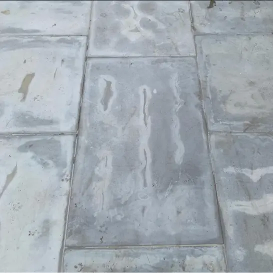 Efflorescence is a white or greyish powdery substance that can appear on the surface of natural stone, especially in damp or humid conditions. This is caused by the migration of salts to the surface of the stone and the subsequent evaporation of water. It can be unsightly but it will not affect the structural integrity of the stone.
